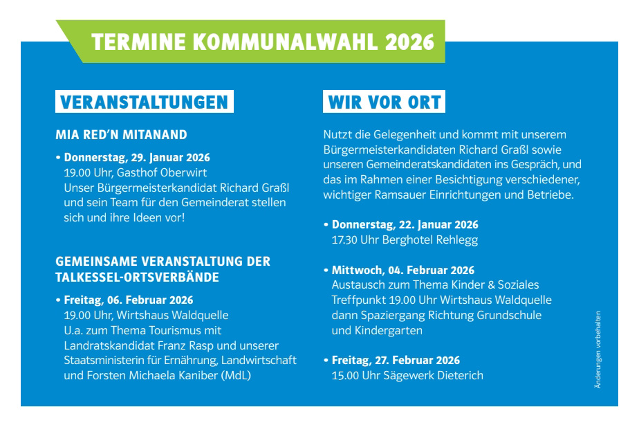 Fast 70 Jahre CSU in der Ramsau bedeuten Kontinuität, Verlässlichkeit und Bürgerorientierung.